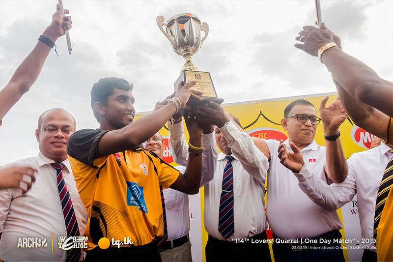The Mahinda-Richmond Cricket Encounter is an annual cricket big match played between the first XI cricket teams of Mahinda College and Richmond College in Galle. It is one of the longest cricket match series in Sri Lanka, having been played for over 110 years. The match which is also known as the "Lovers' Quarrel" in public, is played at the Galle International Stadium. Lovers' Quarrel was initiated in 1905, under the two principals Mr. Frank Lee Woodward of Mahinda College and Rev. James Horne Darrel of Richmond College.